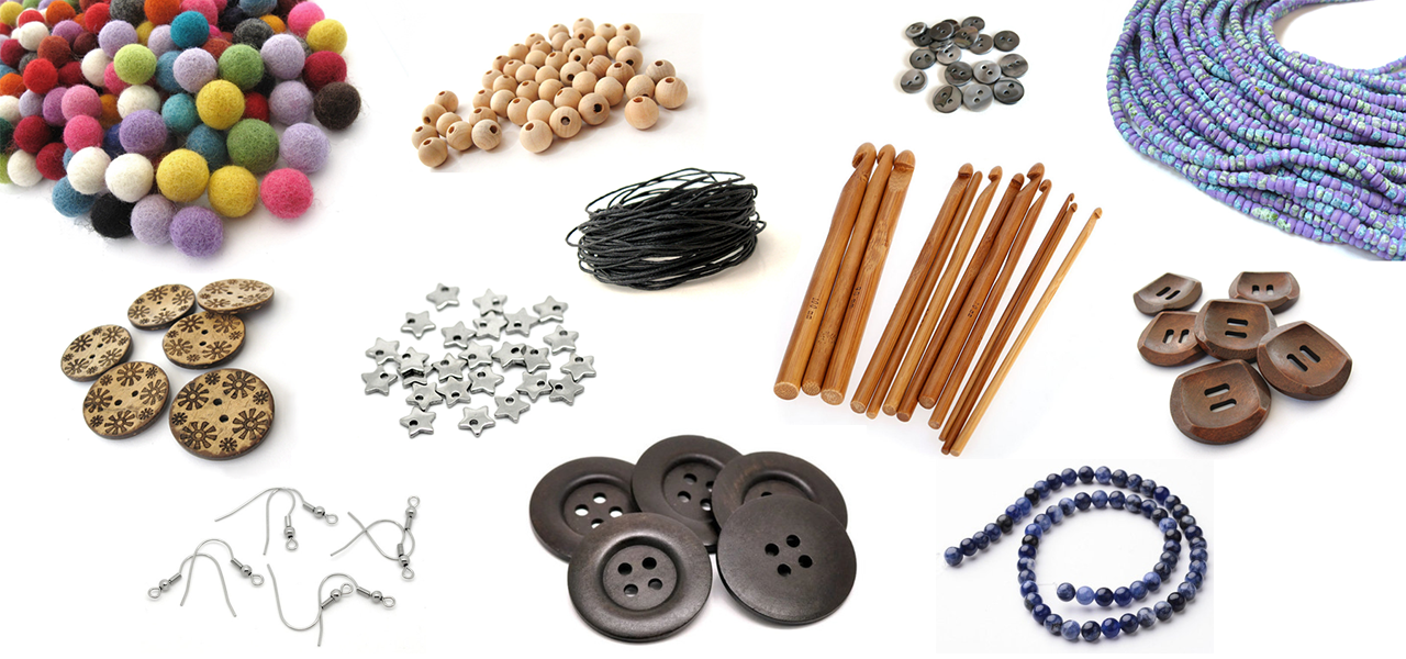 Ton of buttons, sewing patterns, iron-on patches, easy knitting kits and craft kits. Aesthetic, cute and lovely sticker packs for scrapbooking, journal and planner, and more craft paper projects.